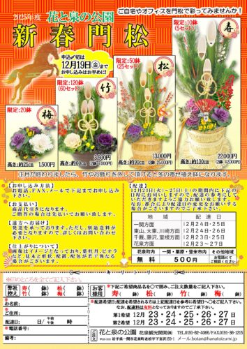 毎年恒例の「花と泉の公園 新春門松」の注文を開始いたします!